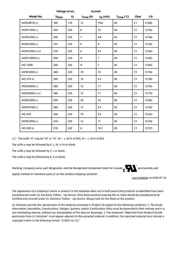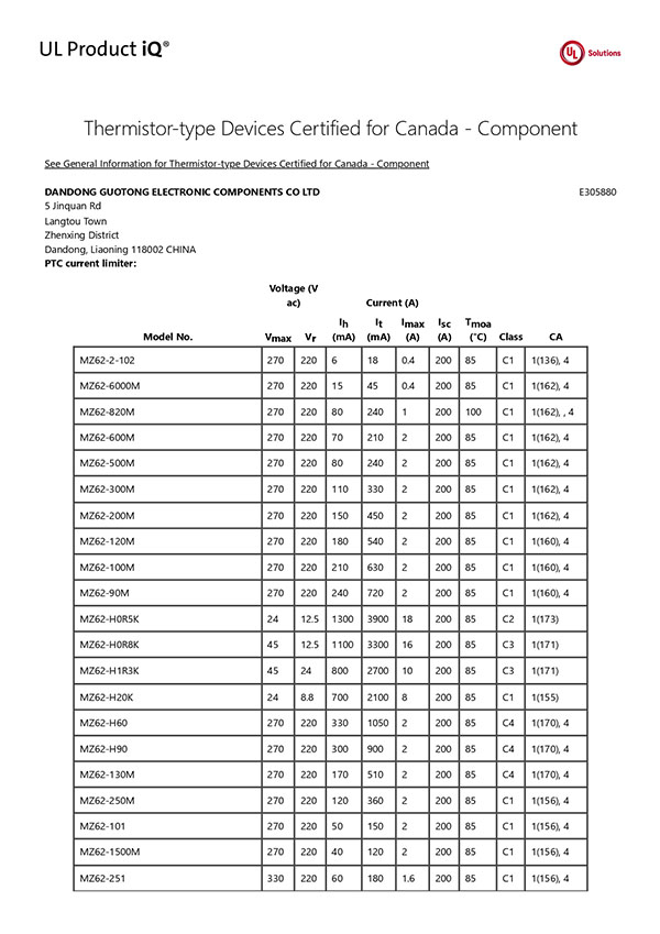 XGPU8.E305880 - Thermistor-type Devices Certified for Canada - Component