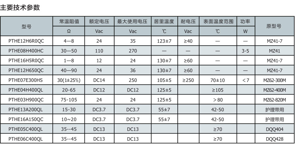 恒温加热用PTC热敏电阻的恒温加热特性,是由材料决定的,其原理是当PTC热敏电阻通上电后,因为自发热导致元件本体温度上升,电阻值进入跃变区。电流迅速下降,于是恒温加热PTC热敏电阻表面温度持续保持恒定值。该温度只与PTC热敏电阻的居里温度和外加电压有关,而与环境温度基本无关。
