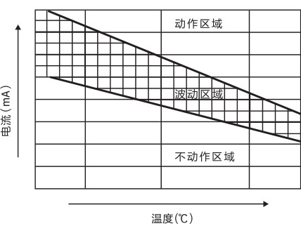 使用环境温度,不动作电流及动作电流三者之间的关系,如下图所示。