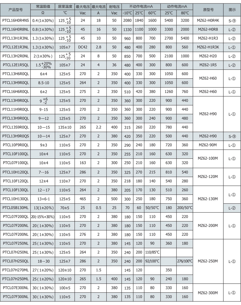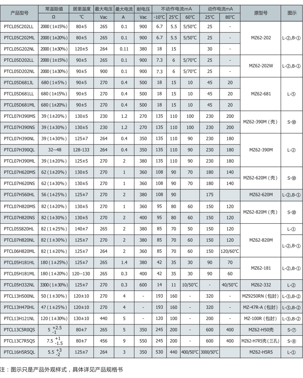 过流保护系列PTC热敏电阻器